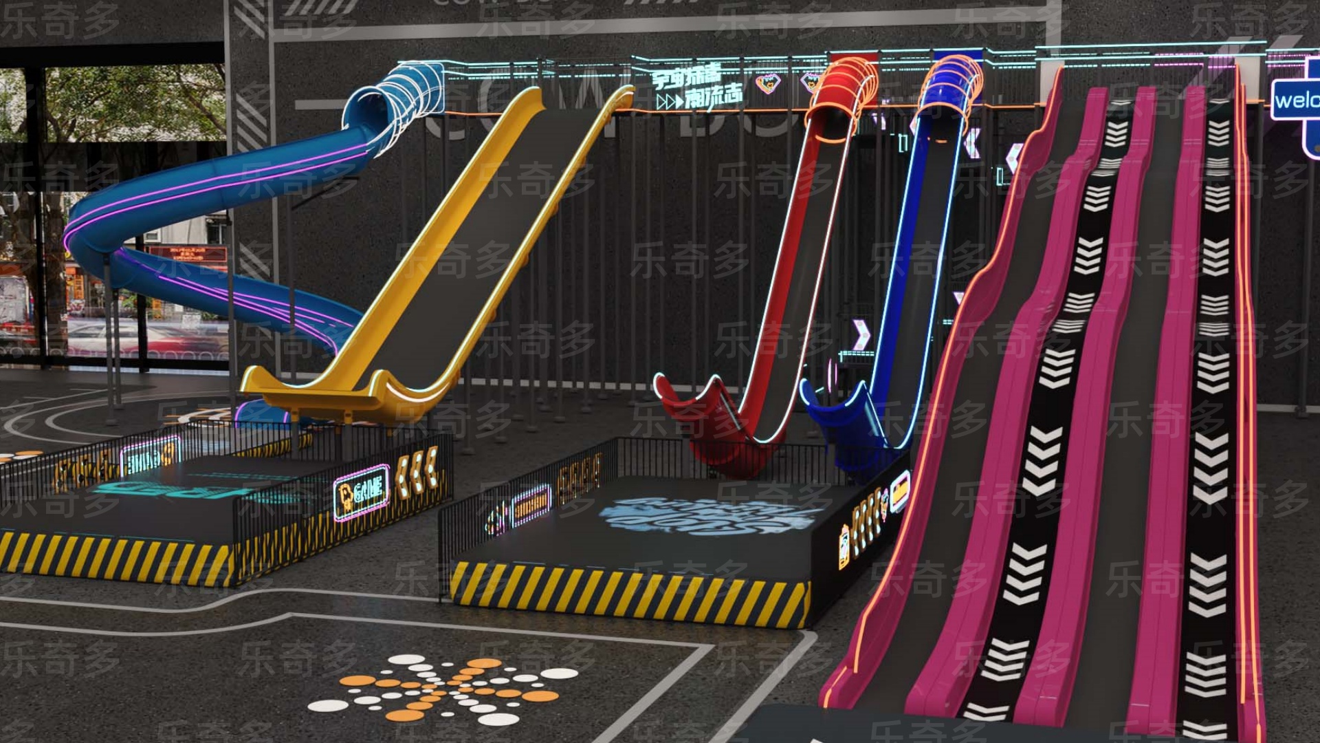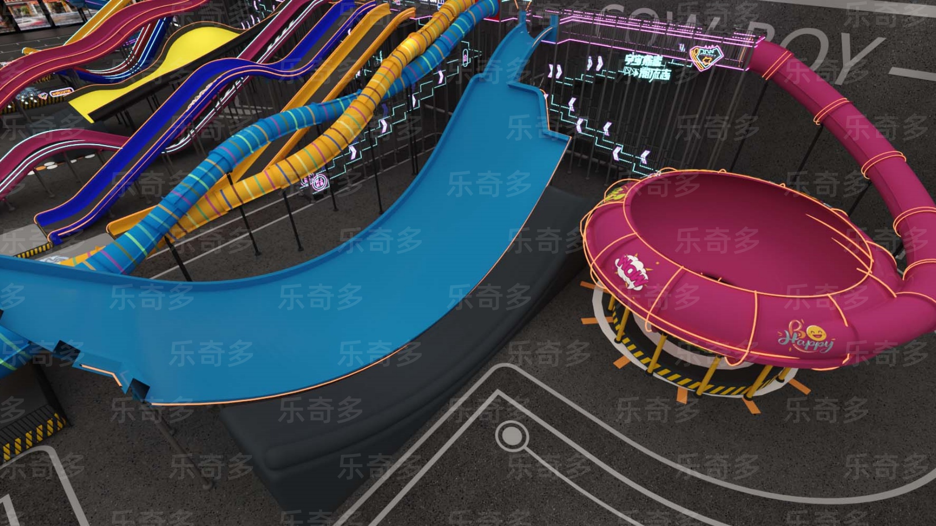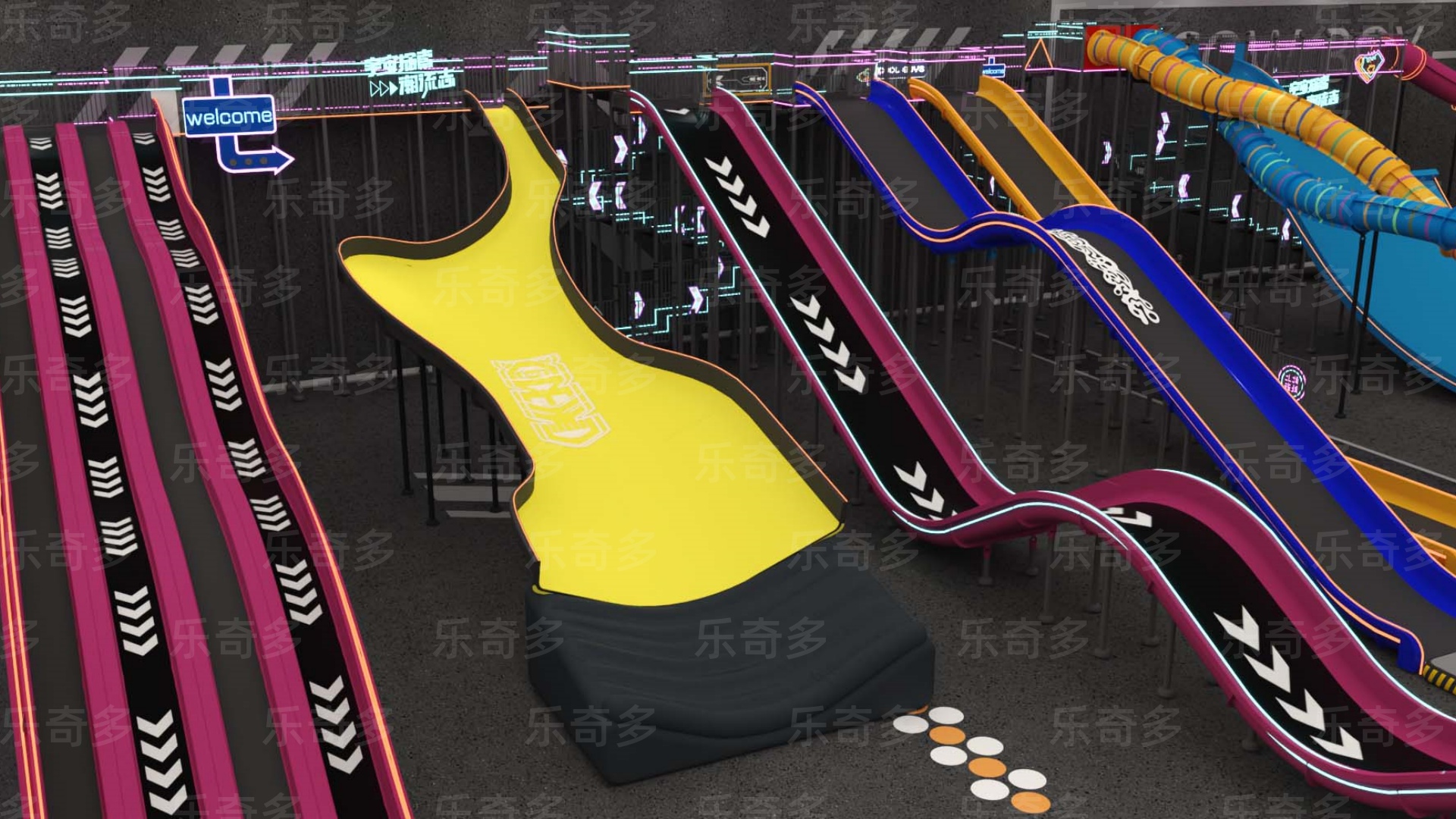 項目玩法:矩陣滑梯,波浪滑梯,互動