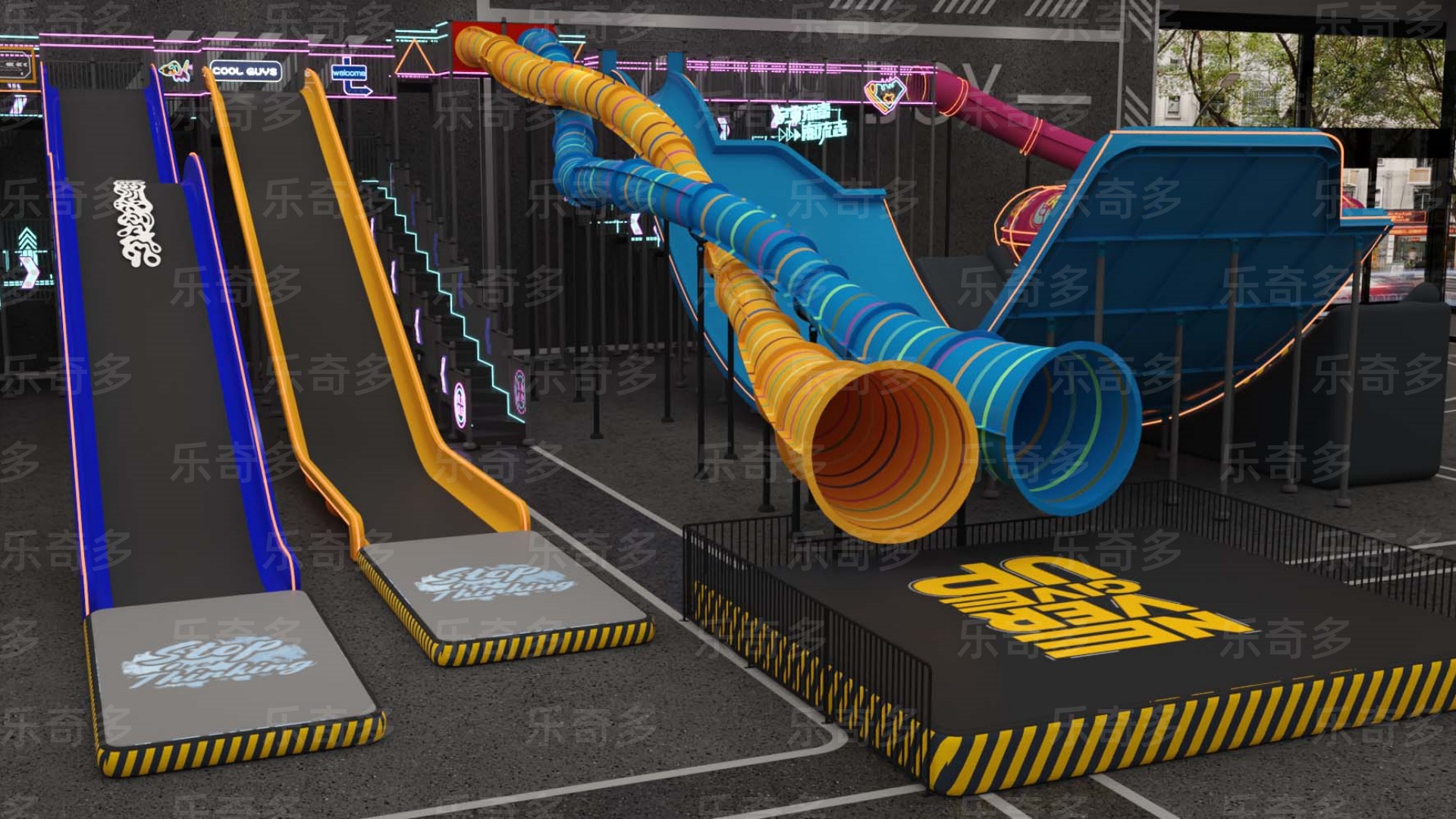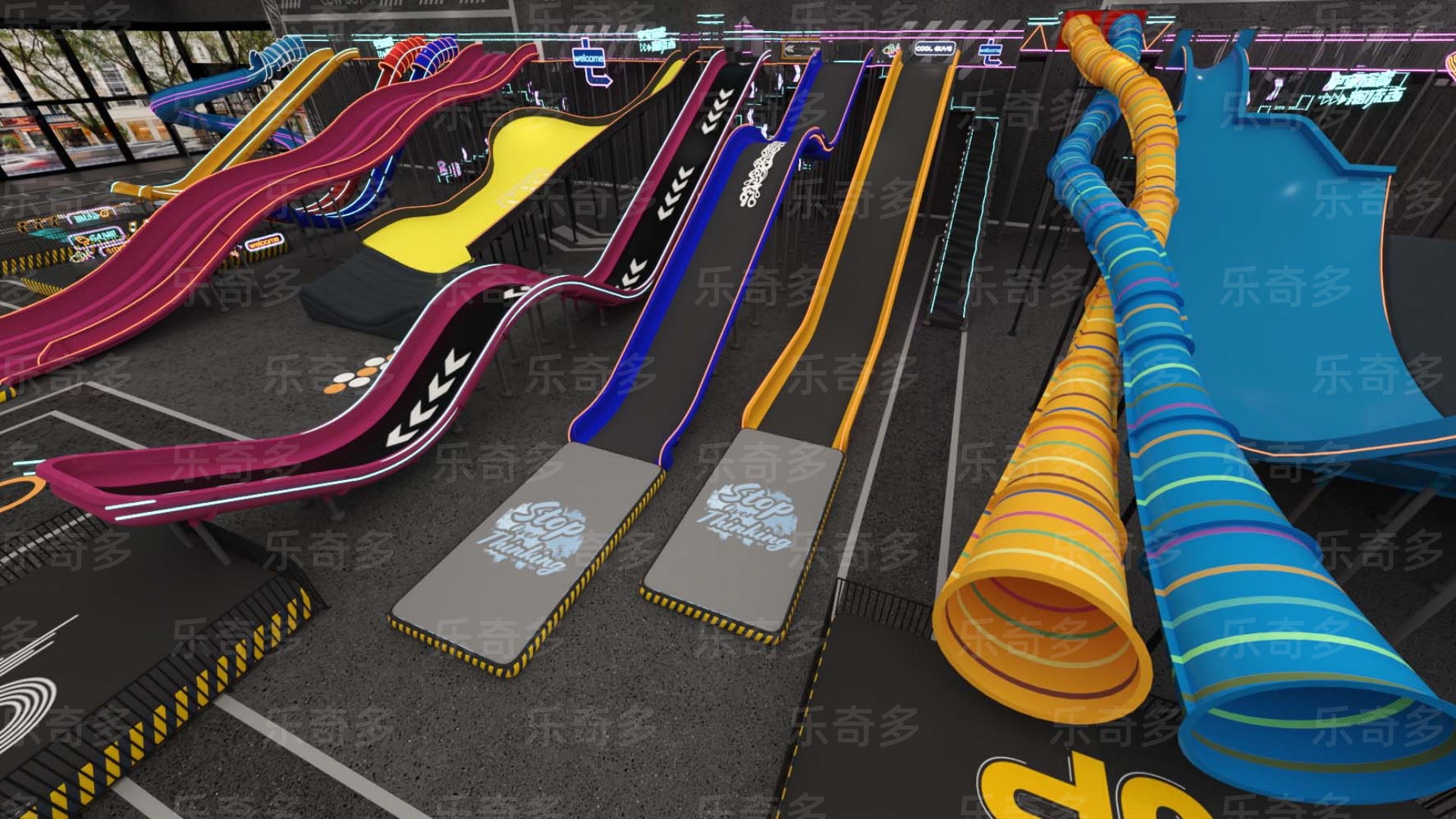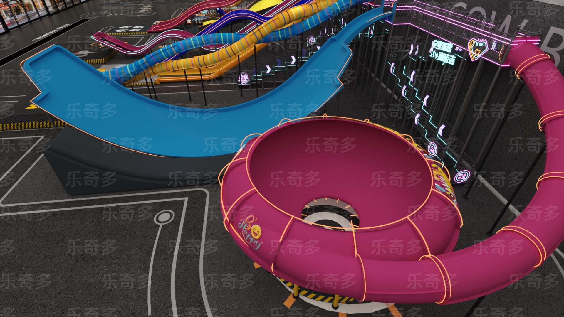 項目玩法:矩陣滑梯,波浪滑梯,互動